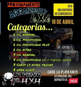 Un evento con distintas categorías x cilindrada desde 6 hasta 8 Open Class, A celebrarse en la Carretera  la Playa Km 15, a espaldas del deposito el TREVI